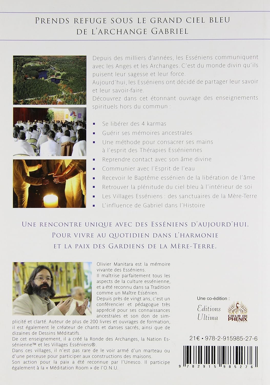 Depuis des milliers d’années, les Esséniens communiquent avec les Anges et les Archanges. C’est du monde divin qu’ils puisent leur sagesse et leur force. Aujourd’hui, les Esséniens ont décidé de partager leur savoir et leur savoir-faire. Découvrez dans cet étonnant ouvrage des enseignements spirituels hors du commun car il s’agit d’une rencontre unique avec des Esséniens d’aujourd’hui. Pour vivre au quotidien dans l’harmonie et la paix des Gardiens de la Mère-Terre.