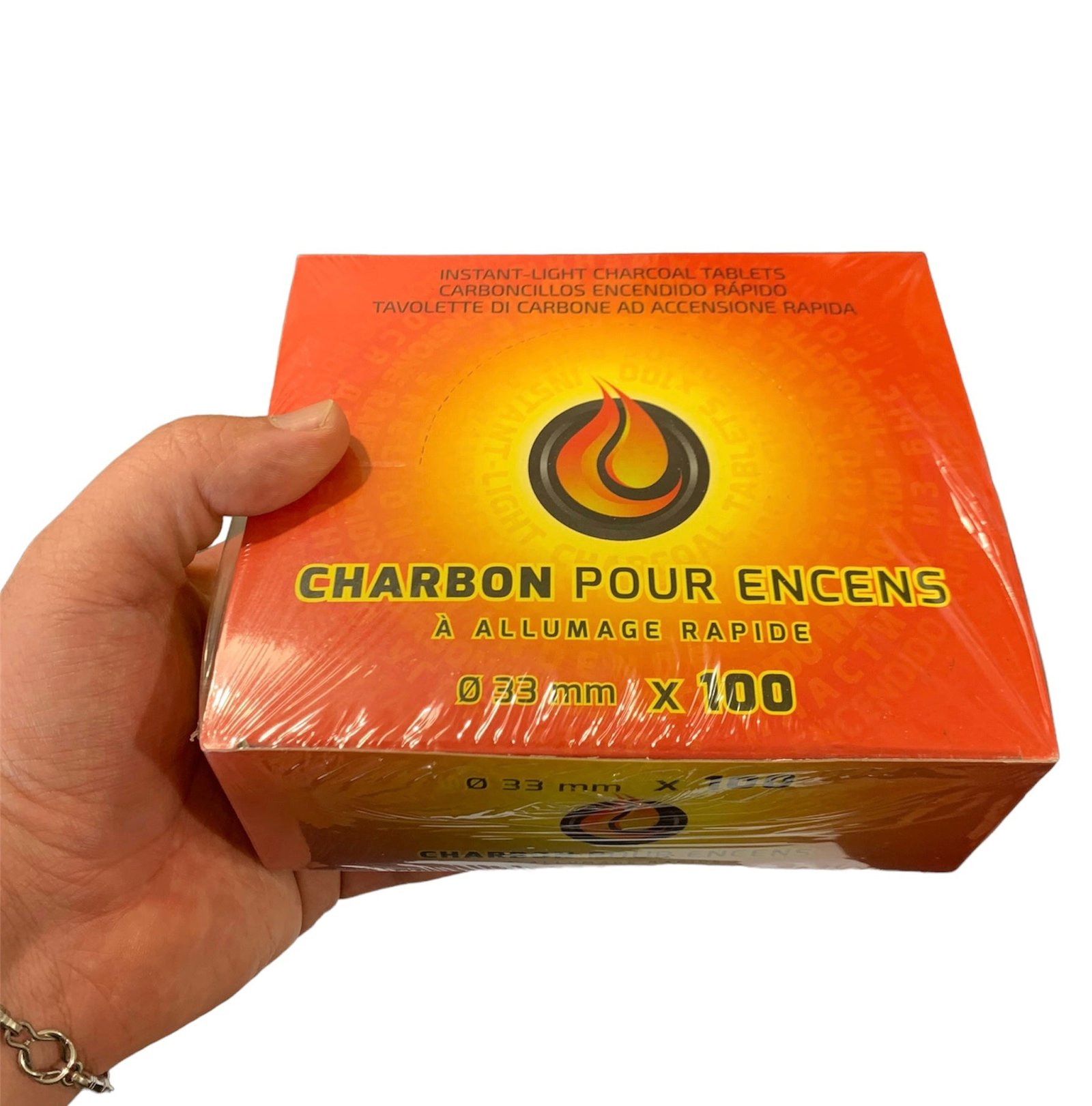 Boîte de tablettes de charbon de bois pour brûler en toute sécurité de la résine et de la poudre d’encens, etc. Le charbon de bois est produit à partir de bois récupéré de manière durable dans les vergers de pommiers lors de la taille et du remplacement des arbres. Plutôt que de gaspiller ce matériau, il est converti en comprimés de charbon de bois de haute qualité.