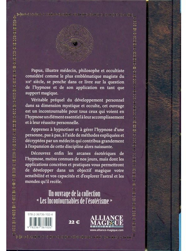 Papus, illustre médecin, philosophe et occultiste considéré comme le plus emblématique magiste du xixe siècle, se penche dans ce livre sur la question de l’hypnose et de son application en tant que support magique. Véritable préquel du développement personnel dans sa dimension mystique et occulte, cet ouvrage est un incontournable pour tous ceux qui voient en l’hypnose un élément essentiel à leur accomplissement et à leur réussite personnelle. Apprenez à hypnotiser et à gérer l’hypnose d’une personne, pas à pas, à l’aide de méthodes expliquées et décryptées par un médecin qui contribua grandement à l’expansion de cette discipline alors naissante. Découvrez enfin les arcanes ésotériques de l’hypnose, moins connues de nos jours, mais dont les applications concrètes et pratiques vous permettront de développer dans un objectif magique votre sensibilité et vos capacités et d’explorer l’astral et les mondes qu’il recèle. Un ouvrage de la collection « Les Incontournables de l’ésotérisme »